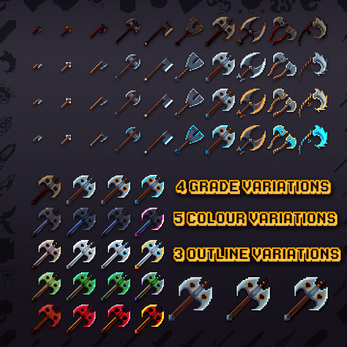 | Tags | 32x32, axes, battleaxe, Fantasy, game-assets, inventory-icons, Loot, Pixel Art, rpg-icons, Weapons |